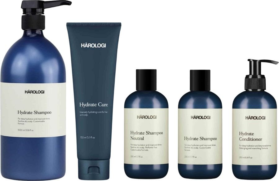 Harologi Hydrate beinhaltet ein Shampoo, Conditioner und eine Intensivkur. Das Shampoo reinigt das Haar gründlich und versorgt es mit Feuchtigkeit. Der Conditioner bändigt das Haar und macht es leicht kämmbar. Die Intensivkur sorgt für eine noch intensivere Pflege und lässt das Haar strahlen. Alle Produkte sind frei von Parabenen und Sulfaten.